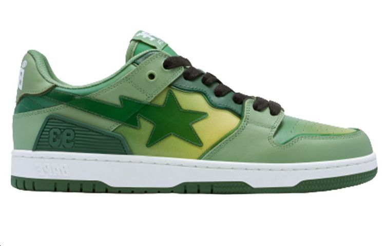 A BATHING APE SK8 Sta Leather Low 'White Green' 1I70-191-021-GREN