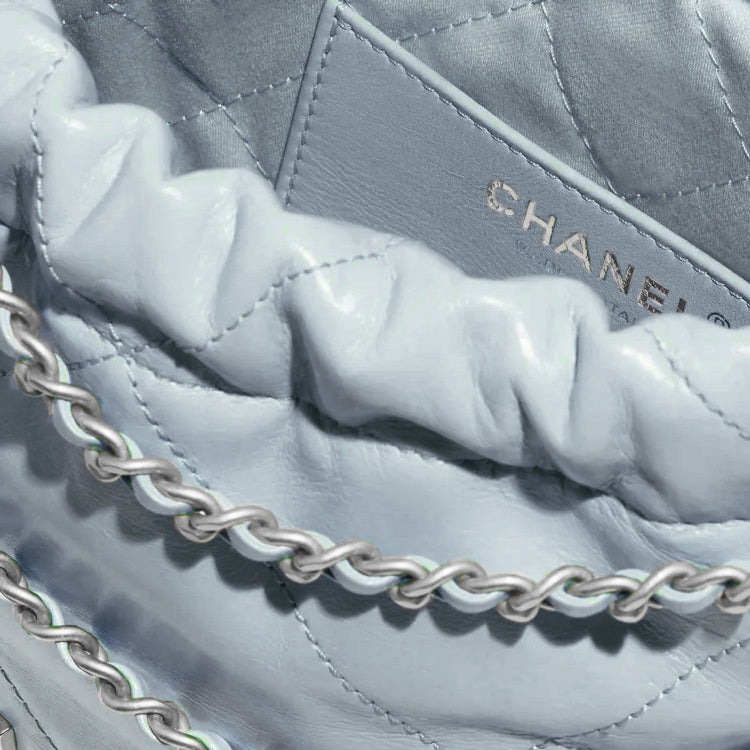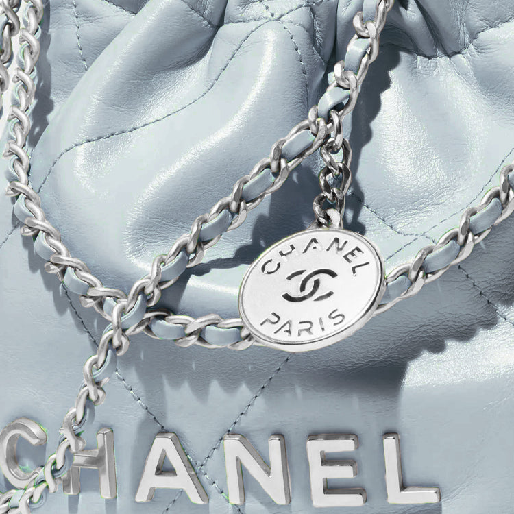 CHANEL 22Bag Shiny Calfskin Bucket Bags Shoulder Bag Crossbody Bag Mini Women's Cream Blue/Baby Blue