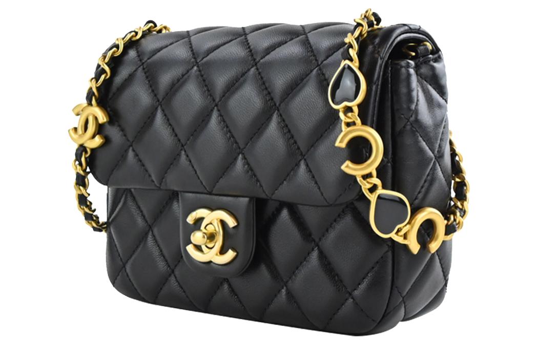 CHANEL 22K Autumn And Winter Lambskin Flap Crossbody Bag Shoulder Bag Small Size Women's Black