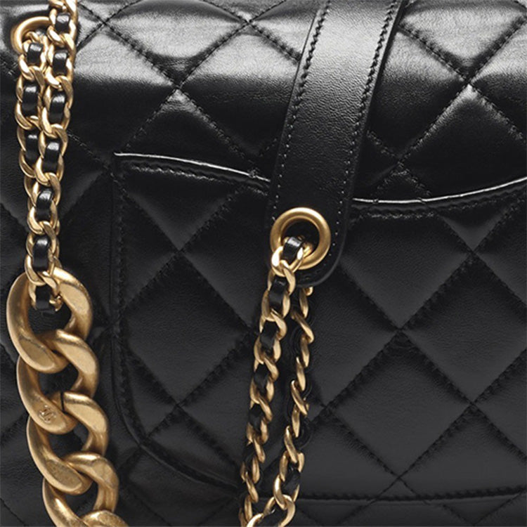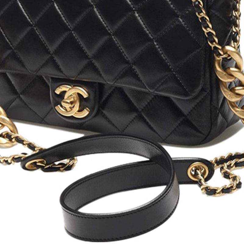 CHANEL 22P Lambskin Mouth Cover Bag Chain Bag Crossbody Bag Shoulder Bag Women's Black