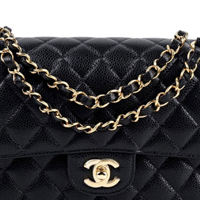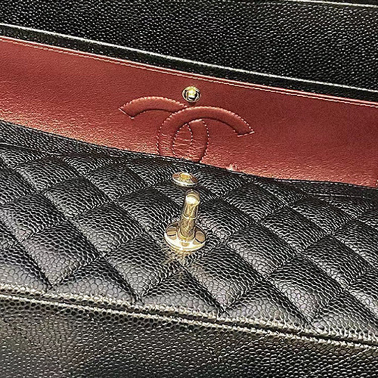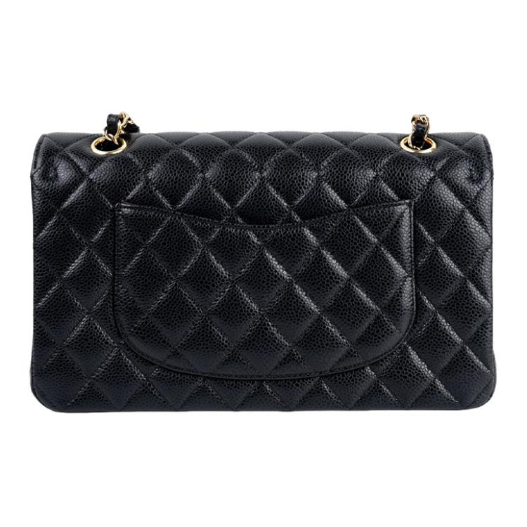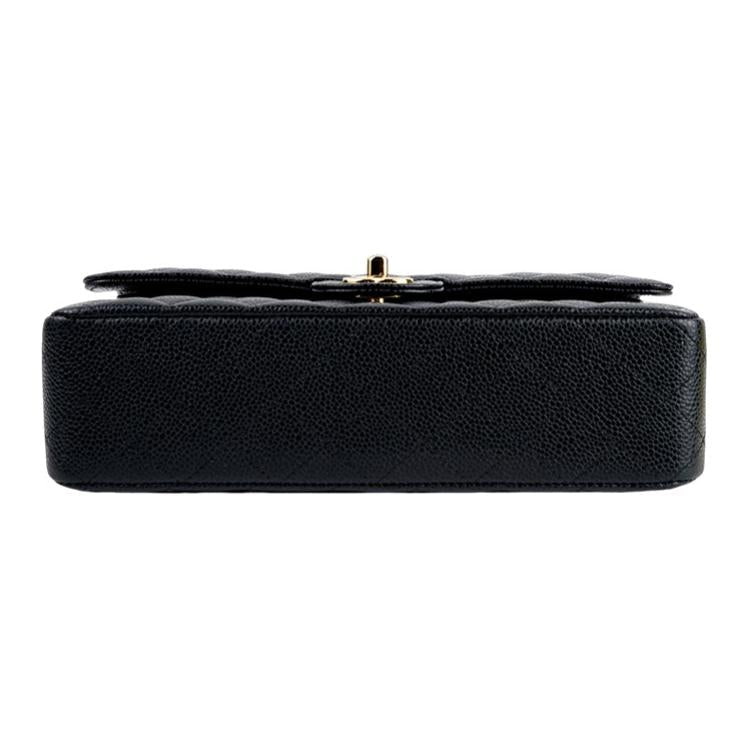 CHANEL Classic Double Flap Quilted Caviar Gold-tone Medium Black