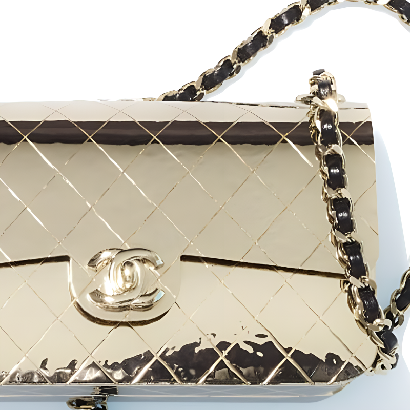 CHANEL Metal Box Bag, Evening Bag, Metal Bag, Crossbody Bag, Shoulder Bag Small Size Women's Solid Gold