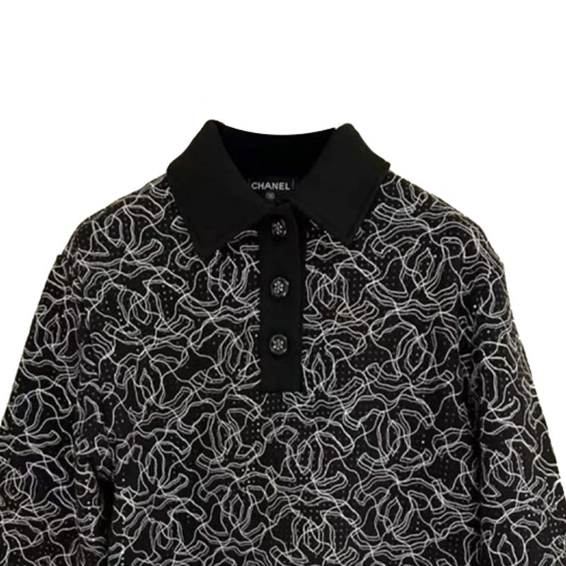 CHANEL Polo Shirt Women's Black White