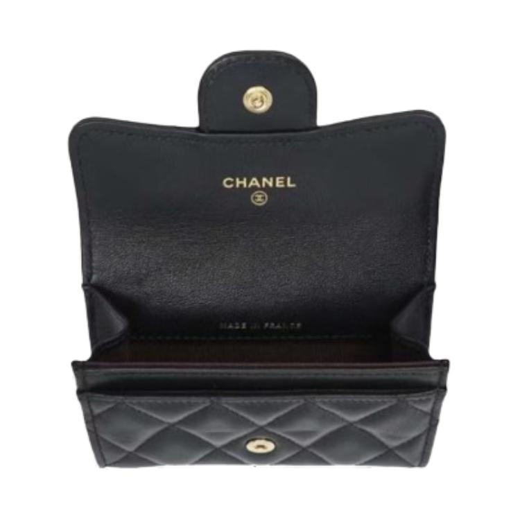 CHANEL Sheepskin Card Holder Women's Dark Gray