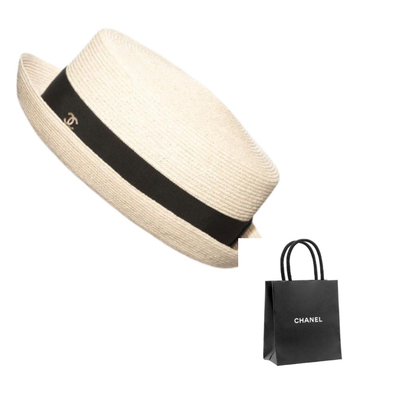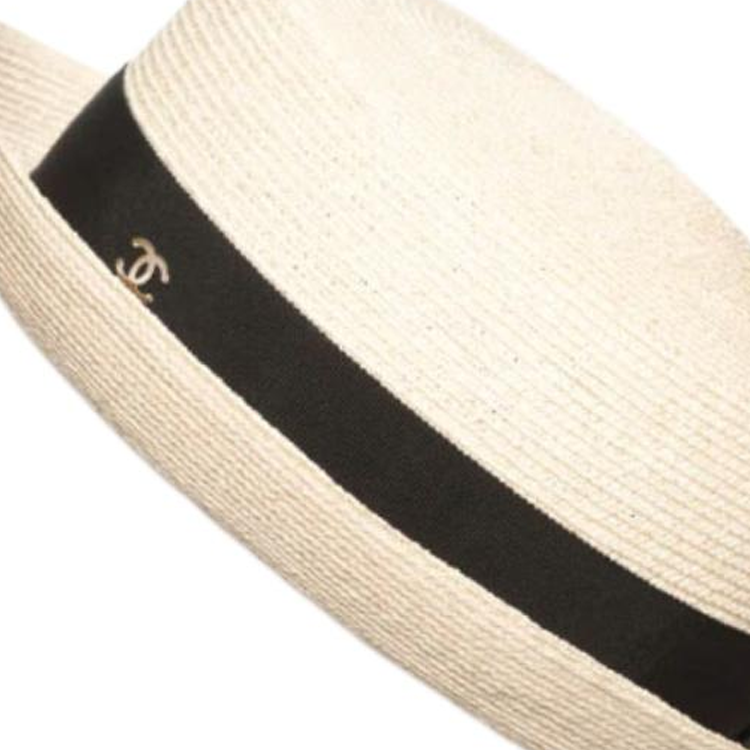 CHANEL Straw Woven Hats & Caps Women's Beige