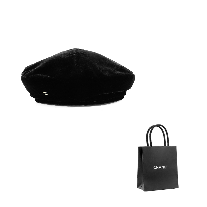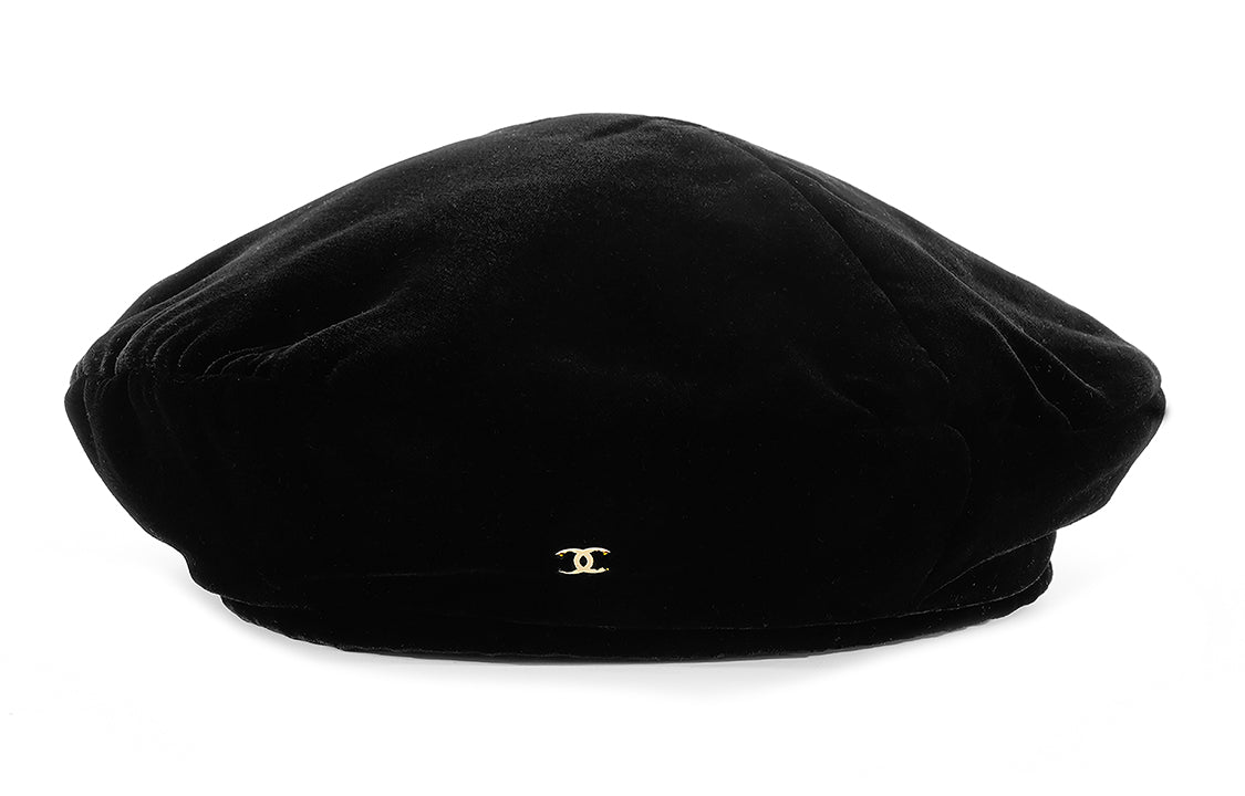 CHANEL Velour Berets Women's Black