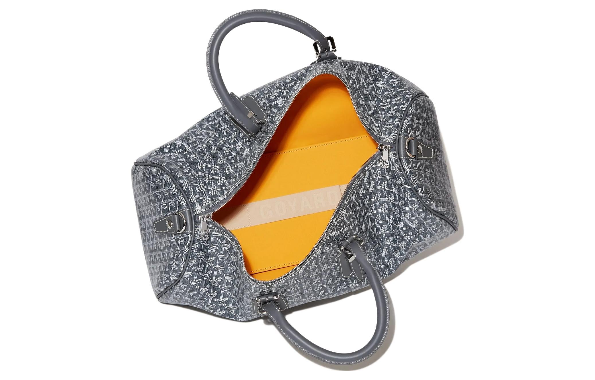 GOYARD Boston Canvas With Leather Portable Crossbody Bag, Travel Bag Medium Size Unisex Gray