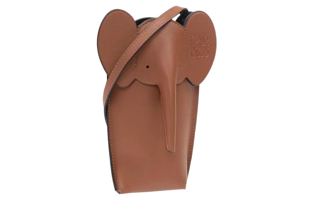LOEWE Elephant Pocket Classic Calfskin Crossbody Bag With Cell Phone Pouch Regular Women's Brown