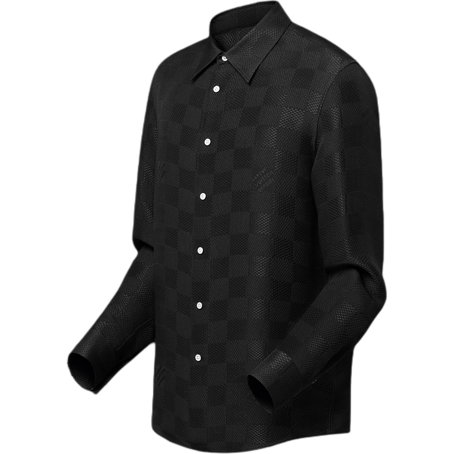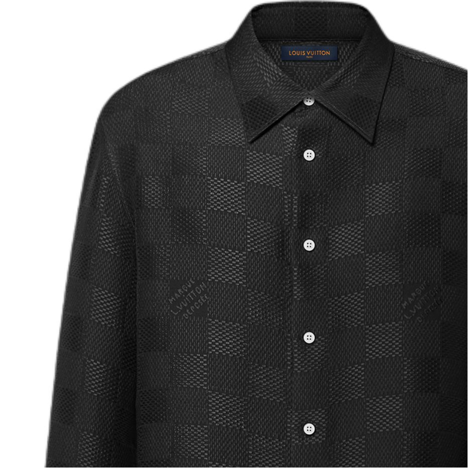 LOUIS VUITTON 1AHCGA Jacquard Damier Long-Sleeved Silk Shirt