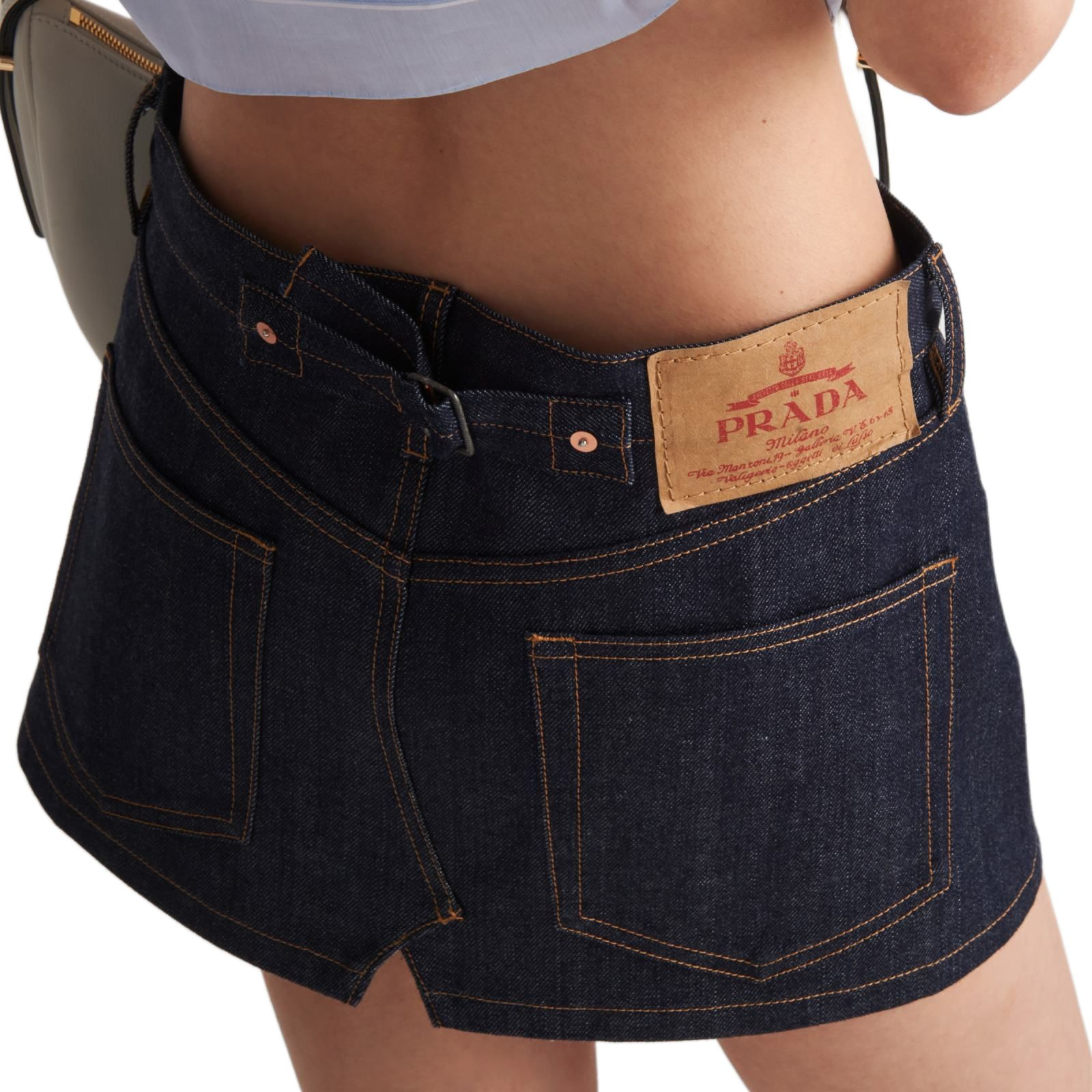 PRADA Logo-Patch Denim Mini Skirt