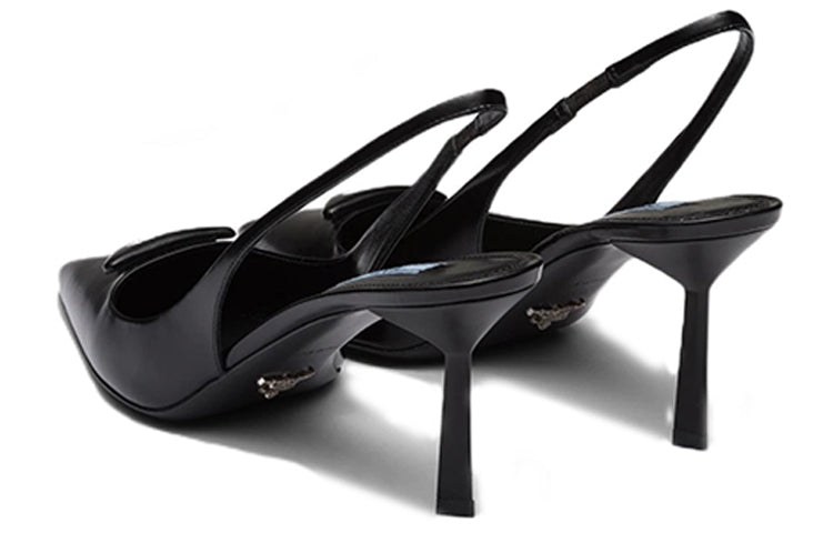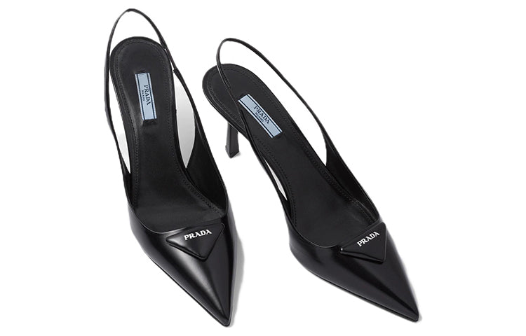 PRADA Patched Logo Brushed Leather Slingback Heels 'Black' Women's