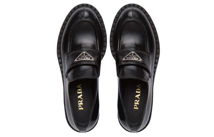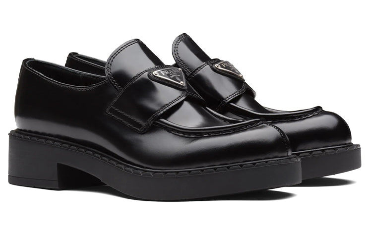 (WMNS) PRADA Chocolate 50mm Brushed Leather Loafer 'Black' 1D246M_ULS_F0002_F_B050